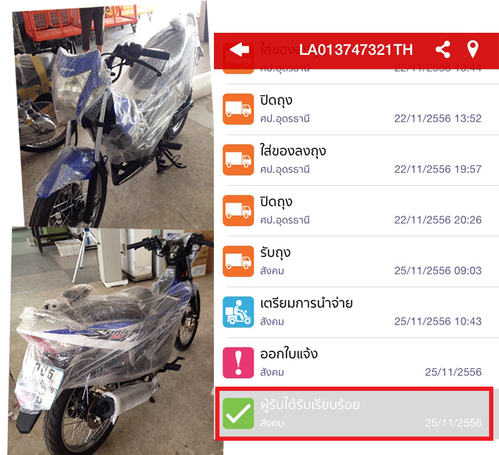 ตัวอย่างการส่งรถทางไปรษณีย์ให้กับลูกค้าต่างจังหวัด