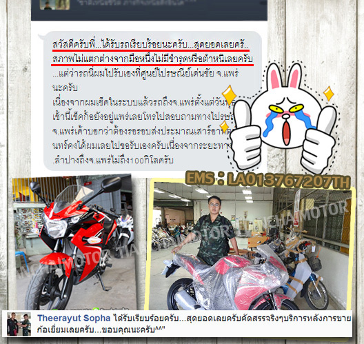 คุณธีระยุทธ ซื้อรถ CBR150i ส่งไปจ.ลำปาง ได้รับรถเรียบร้อยแล้วค่ะ