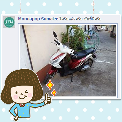 คุณสุเมธ ซื้อรถ CBR150i ให้ส่งไปที่จ.ขอนแก่น ได้รับรถเรียบร้อยแล้วค่ะ
