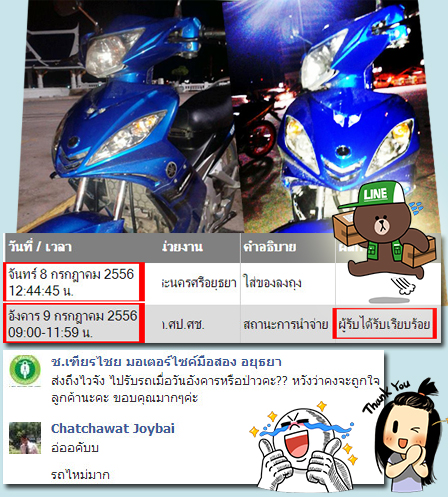 คุณเบญญาภา ซื้อรถKSRและให้ส่งไปรษณีย์ไปที่พัทยา ได้รับรถเรียบร้อยแล้วค่ะ